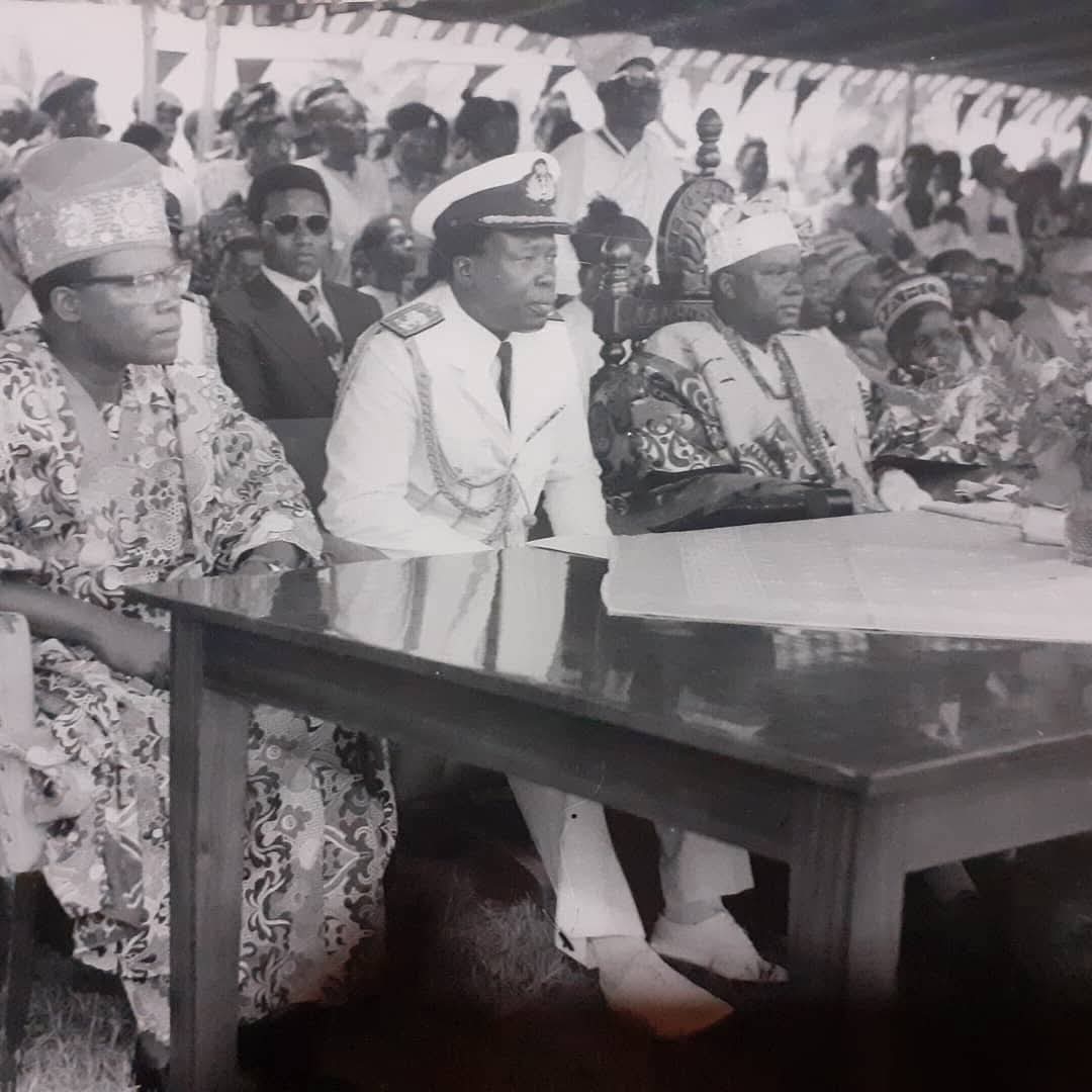 A photograph from April 1977 Badagry, taken during Nigeria’s military era, a period when political authority was centralised and traditional institutions were formally affirmed through state recognition.
