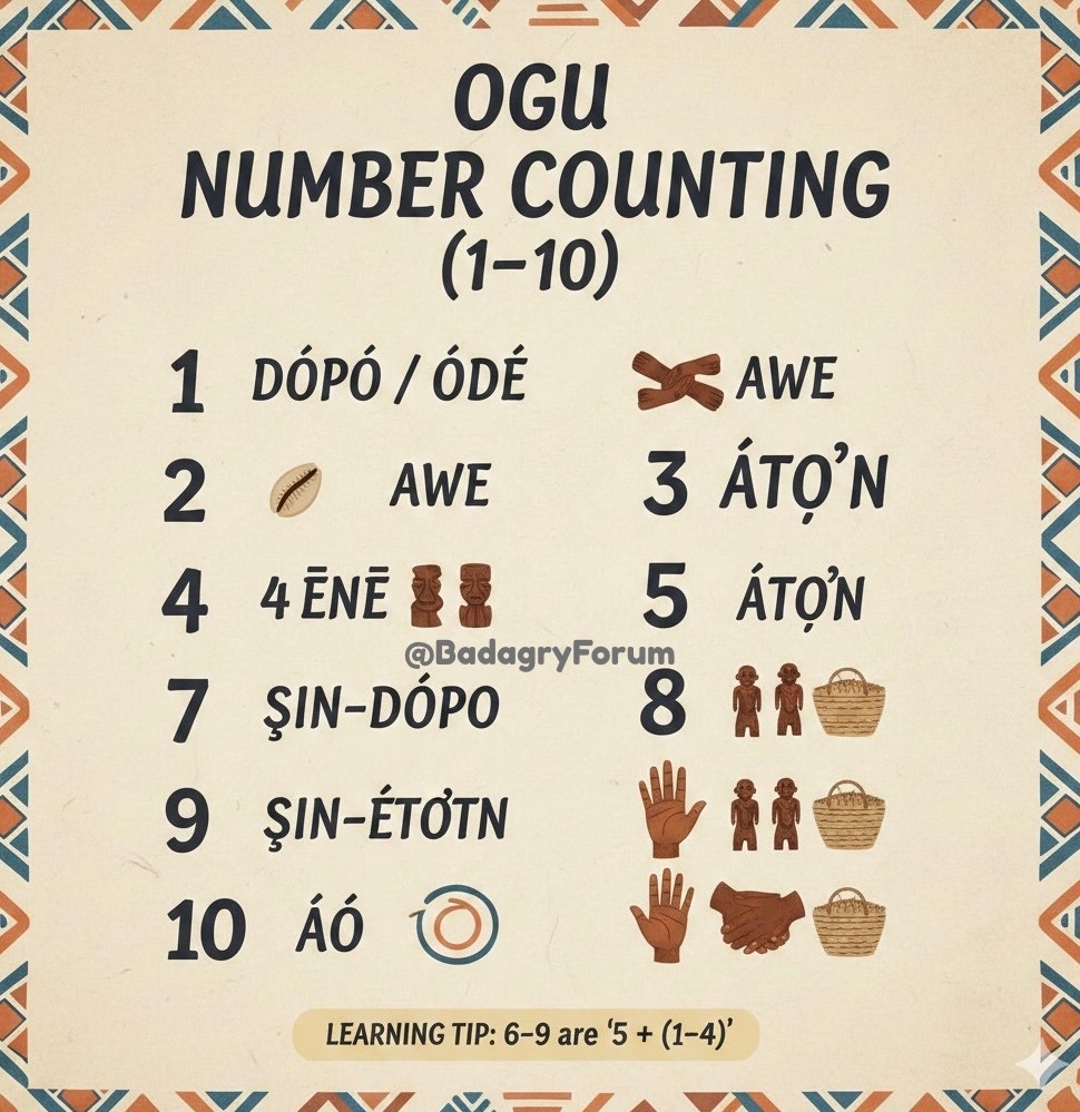 Badagry Forum / General / Learn Ogu / Egun Language / Number Counting In Ogu Language (1–10) 415 Views